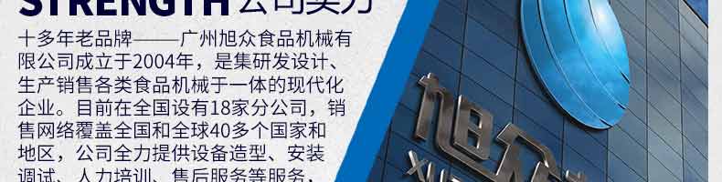 廣州旭眾食品機(jī)械有限公司是一家集科研開發(fā),生產(chǎn)設(shè)計(jì),營(yíng)銷服務(wù)為一體的現(xiàn)代化生產(chǎn)企業(yè)?,F(xiàn)代化生產(chǎn)車間,精湛制造技術(shù),所產(chǎn)機(jī)械歷經(jīng)市場(chǎng)重重考驗(yàn),不斷贏得海內(nèi)外客戶的贊譽(yù)。